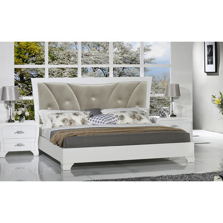 Отделка белый блестящий лак, рама изголовья в отделке "под крокодила", ткань бежевый велюр.